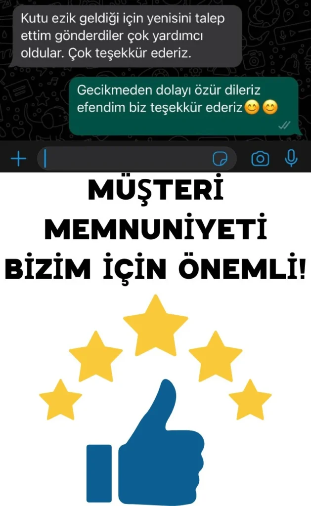 İstanbul merkezli olarak 2017 yılından bu yana başarılı faaliyetleriyle sektörde öne çıkan firmamızın deneyimli personeli, tüm siparişlerde ürünlerin hazırlanmasından müşterilerimize teslim edilmesine kadarki süreçte özenle çalışmaktadır. Dolayısıyla satın almak istediğiniz ürün kısa sürede büyük bir titizlikle paketlenir ve güvenle size teslim edilmek üzere yola çıkartılır. Kargo aşamasında satın alınan ürünün herhangi bir fiziksel zarara uğramaması için paketlemeler temkinli bir şekilde yapılır.